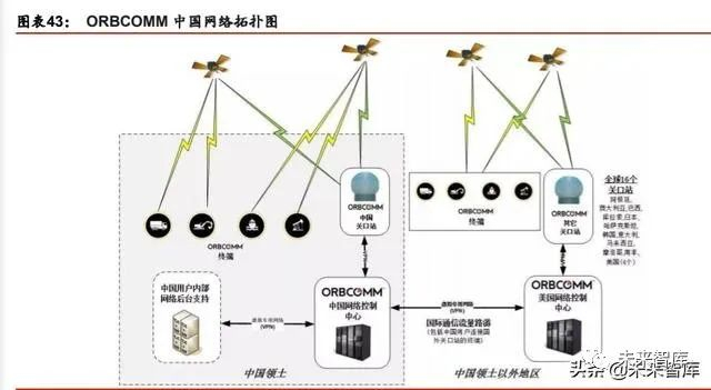 海外卫星物联网案例--Orbcomm。Orbcomm 是一家提供机对机(M2M)和卫星物联网(IoT) 解决方案提供商,公司提供蜂窝、卫星、蜂窝卫星双模式和卫星 AIS 四大网络连接服务, 用户群横跨交通运输、重型装备、仓储、海事、石油和天然气、公用事业和政府等多个领 域,是全球最大的卫星物联网服务提供商。Orbcomm 拥有大约 60 颗 LEO 卫星,其中第 一代 Orbcomm 卫星系统(OG1)空间段由 47 颗 LEO 卫星(其中 6 颗用作备用)围绕 7 个轨道面组成;第二代 Orbcomm 卫星系统(OG2)空间段共计 17 颗 LEO 卫星。相较 OG1,OG2 单颗卫星在容量(6 倍)和速率(2 倍)方面均有较大提升,此外 OG2 卫星 配备自动识别系统(AIS)有效载荷,可接收与报告来自配备 AIS 的海上船只的信号。Orbcomm 系统在全球 120 多个国家和的确获得授权,目前全球已建成投入运营的 Orbcomm 关口站有 16 个,主网管站在美国。