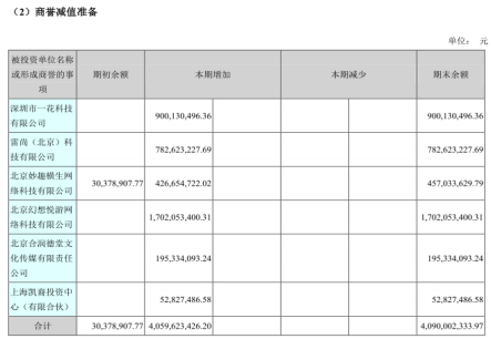 值得关注的是,2018年度,上述六家导致*ST天娱计提巨额商誉减值准备的并购标的,多数来自2015年至2017年的上一轮A股并购潮。*ST天娱2015年至2018年年报显示,雷尚科技与妙网科技2015年下半年成为上市公司子公司,一花科技在2016年下半年加盟,而和润传媒和悦游网络则分别于2017年上半年和2017年下半年,成为上市公司体系中的一部分。五家标的公司计提的商誉减值超过40亿元,是当期*ST天娱商誉减值的“重头戏”。