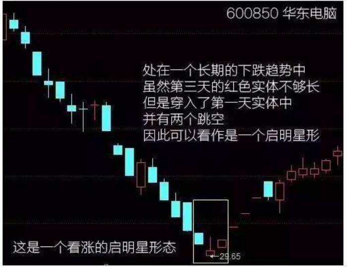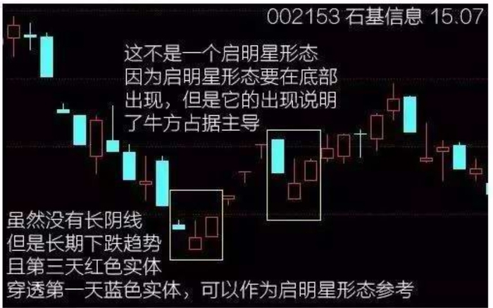 但是在A股,如果它与后面没有形成跳空,或者与前面的跳空很小也可以看作是一个启明星