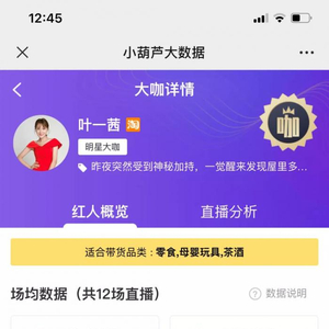 而第三方数据平台小葫芦大数据检测显示,叶一茜在淘宝平台的12场直播中,场均总销售额为144.1万元,场均总PV171万。林先生认为这一数据注水严重,以叶一茜直播间每场销售商品在25件计算,场均总销售额可能只有几十万。
