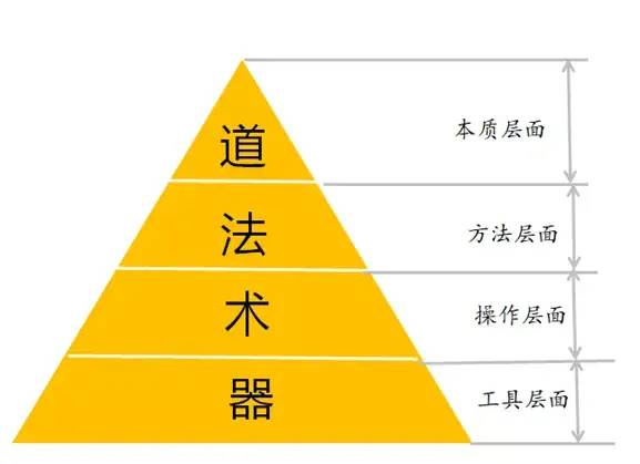 按照中国传统的哲学思想,对事物的认识分为 “道、法、术、器”四个层面。