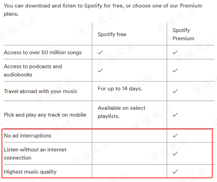 Spotify的创始人、CEO兼董事长Daniel Ek多次表示,Spotify业务获得成功的关键因素之一是“向用户提供免费的音乐服务”。