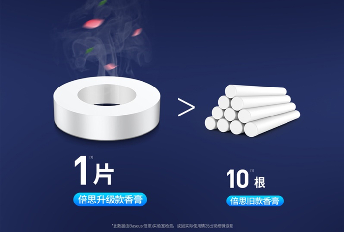 升级款的香膏采用纳米固体浓缩技术,一片顶原来的10根,可香飘整年。