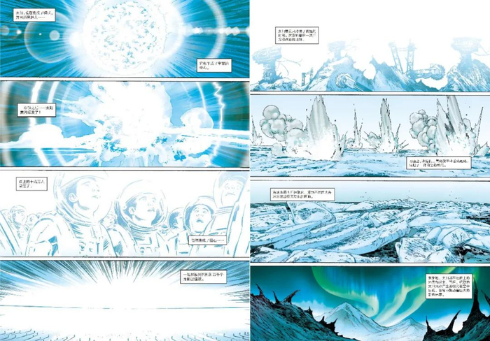 比如《流浪地球》里的“氦闪爆发”,原作中用教科书般的优美语言,描写了太阳的死去。