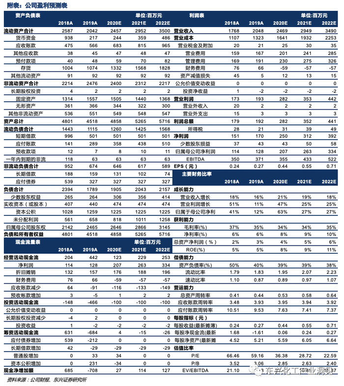公司盈利预测及投资评级:我们预计公司2020~2022年净利润分别为2.07、2.63和3.34亿元,对应EPS分别为0.44、0.55和0.71元。当前股价对应2020~2022年P/E值分别为36、29和23倍。首次覆盖给予“强烈推荐”评级。