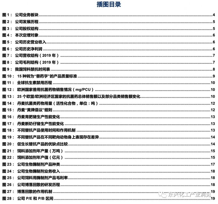 功能性饲料添加剂业务:2018年通公司过收购世唯科技进入功能性饲料添加剂领域。世唯科技主打产品博落回提取物(兽药原料药)和博落回散(兽药制剂)均取得国家新兽药证书,其中,博落回散还取得了农业部颁发的药物饲料添加剂证书,是我国第一个自主研发可长期添加使用的天然植物药源药物饲料添加剂专利产品,填补了国内天然植物药源药物饲料添加剂的空白。