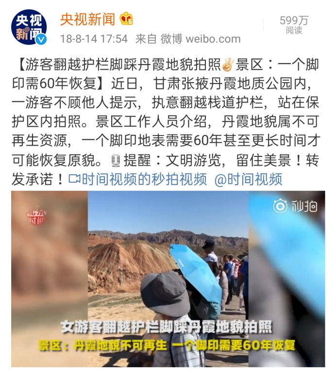 关注 | 网红博主违规进景区拍视频,踩踏丹霞地貌引网友共愤