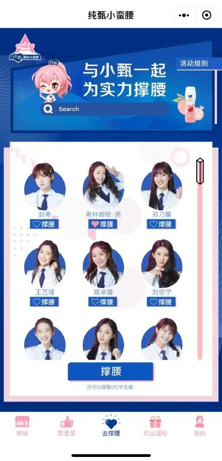 什么是撑腰呢?根据《创造营2020》的撑腰规则显示,粉丝购买印有“助力创造营,马上赢一瓶”标识的纯甄小蛮腰产品,撕开瓶标并在活动时间内使用微信扫描瓶标背面的二维码,即可获得撑腰机会,撑腰机会可为喜爱的学员撑腰。