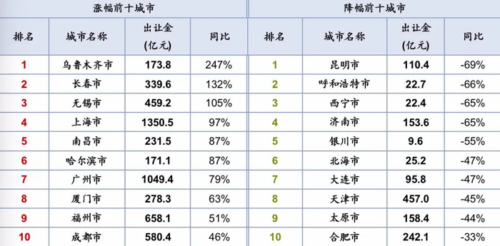 6月土地出让金涨、跌幅前十数据来源:中指院