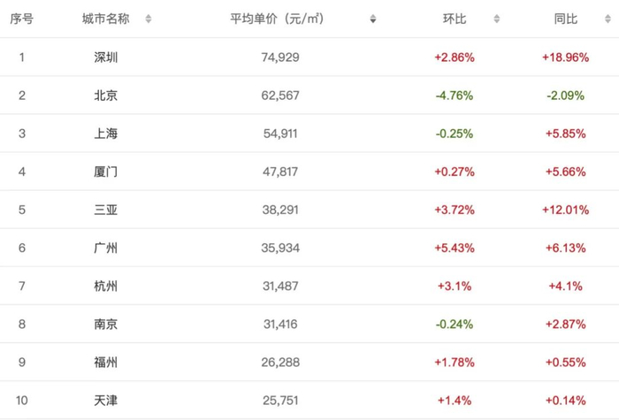二手房同比涨幅第二名的南京,同环比分别上涨4.31%和0.39%,在深圳的巨大涨幅面前并不起眼。