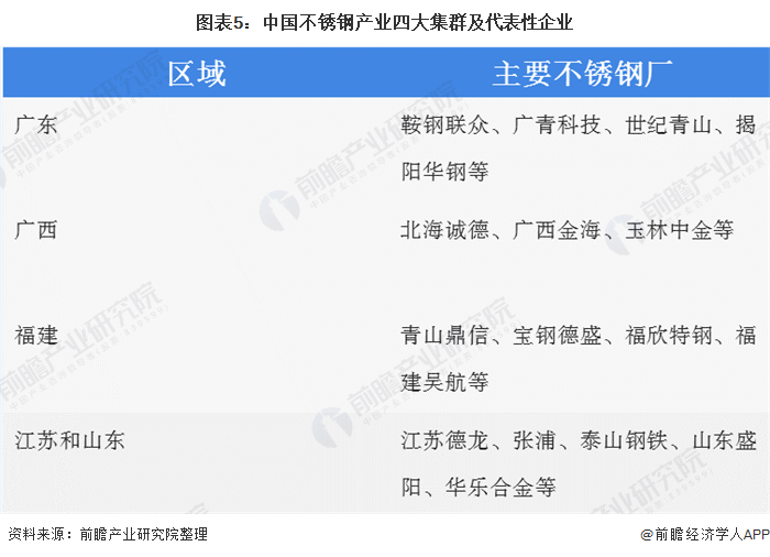 多年来的发展加上行业性质原因,我国不锈钢产业集聚效应不断增强,目前依托产业集聚形成了四大产业集群,包括:福建、广东、广西和无锡。其中华东地区工业门类齐全,拥有众多不锈钢加工与制品产业群,不锈钢消费量与华南地区并驾齐驱。