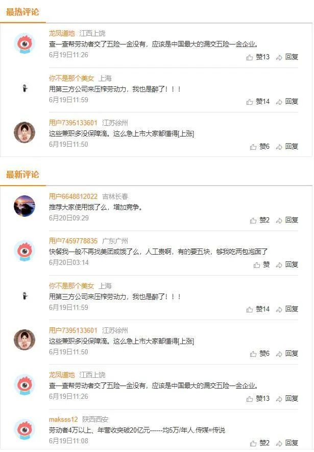 微博网友吐槽某外卖平台通过第三方压榨劳动力