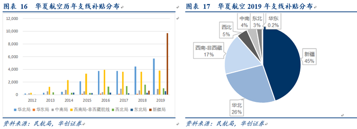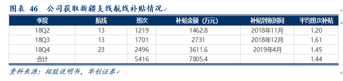 公司18年中进入新疆市场到20年夏秋,航班量增加1.5倍,班次占公司21%左右。公司19年获得来自新疆补贴预计3亿左右。