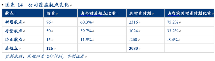 观察15年冬春和20年夏秋航季,公司共有76个航点为新进入航点,占当前公司总覆盖航点的60%,新进入航点总时刻增量为2316个,占总时刻增量3080的75%;