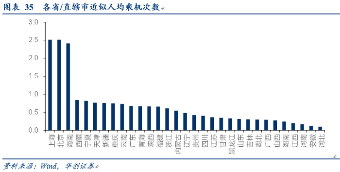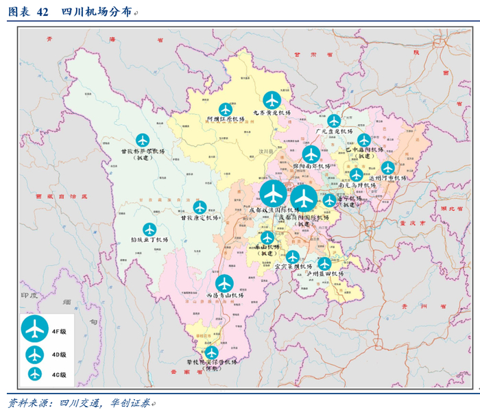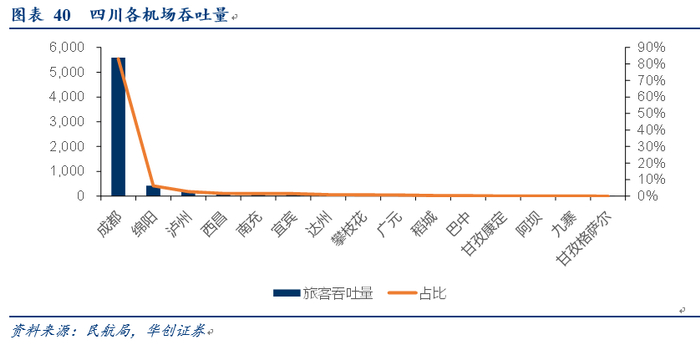 四川:公司四川占比1.3%,明显低于全国4.5%的占比。而成都旅客吞吐量占全省比重达到83%。