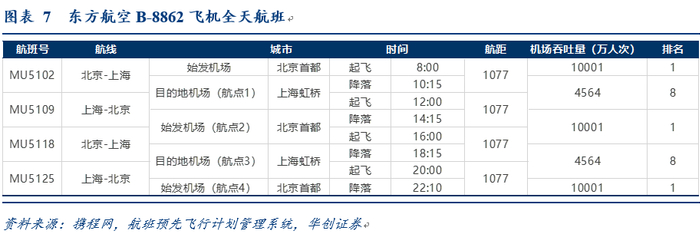 东航:典型京沪线一天1条航线往返,2个机场4次起降,最小间隔1小时45分钟。