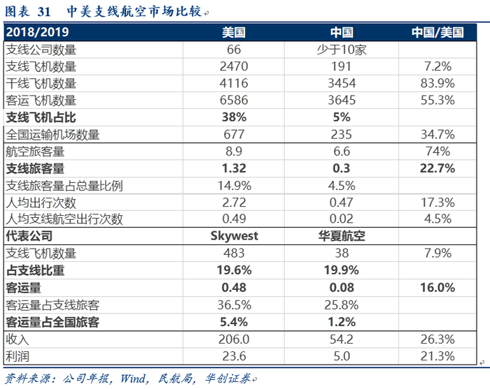 2020/3【华创交运*深度】复盘美国支线航空发展,我国细分市场潜力大,干支结合有望促双赢格局,强调华夏航空“强推”评级