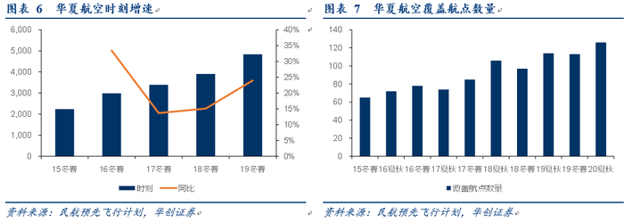 时刻增量看:公司国内周时刻数由15年冬春航季的2236个,增至20年夏秋航季5316个,年复合增速(15冬春-19冬春)21.3%。