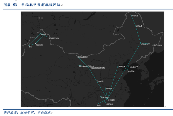 而幸福航空实力相对较弱,在支线航线运营上,较为分散。
