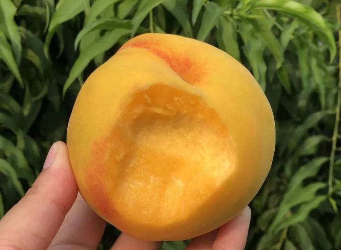一口咬下,脆甜爆汁,桃味十足,一个鲜黄桃顶十个罐头!