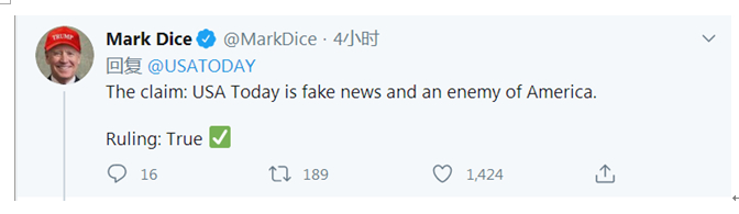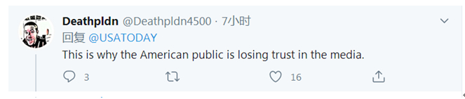 甚至有网友毫不留情攻击该报:“声明:《今日美国报》是假新闻,是美国的敌人。裁决:真。”↓