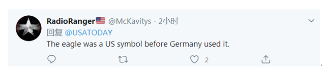 有网友直截了当指明:“鹰(的标志)早在德国使用之前就是美国的象征了。”↓