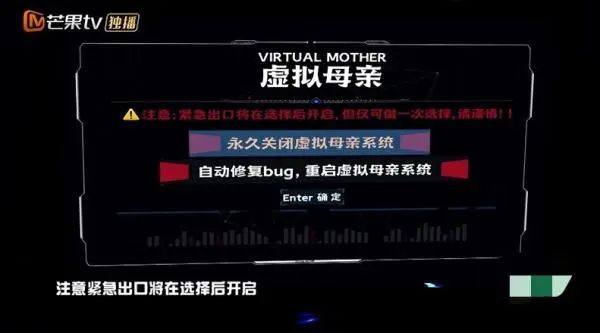《密室大逃脱2》凸显了三个关键元素,“剧情+解谜+恐怖”。在剧情设定上,编剧还是花费了功夫,密室逃脱过程对应着剧情的起承转合,直到最后一刻揭露真相,落地到一个正能量的主题上。像第一期《404的秘密》,主题是“母爱”,在母爱的表达上加入科幻、恐怖的元素,并不显得生硬,最后还给大家留下一个是否让孩子继续沉浸在虚拟母爱中的选择题。第二期《大厦疑云》讲述了一个凄美爱情,略显狗血,但剧情还是在线的。