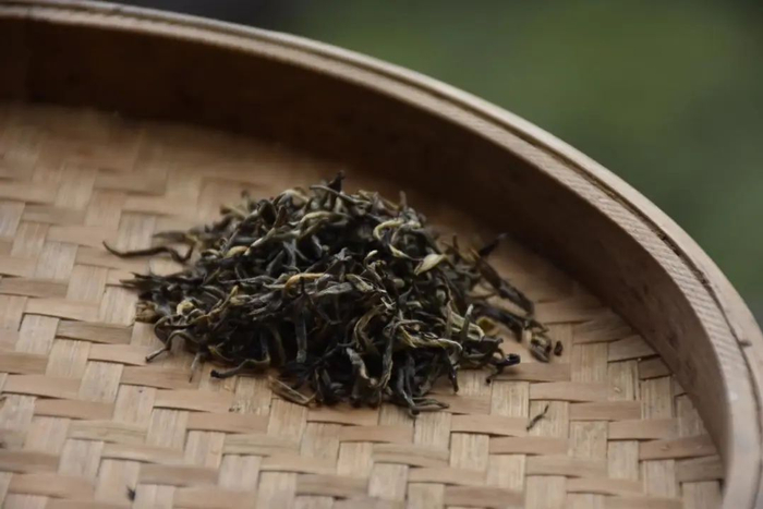 其芽头,外型细小紧秀,颜色“三黄七黑”——金、黄、黑相间。
