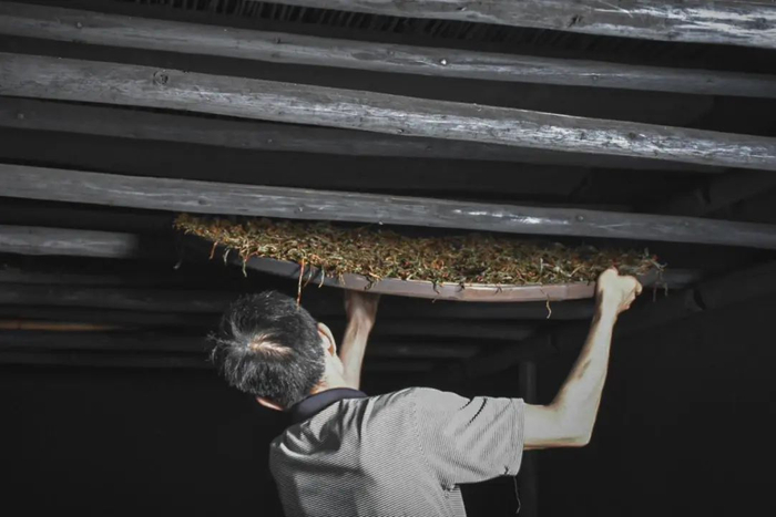 复揉后的眉芽装入竹编内铺平,悬挂高处盖上浸湿的厚布,发酵至少8小时。