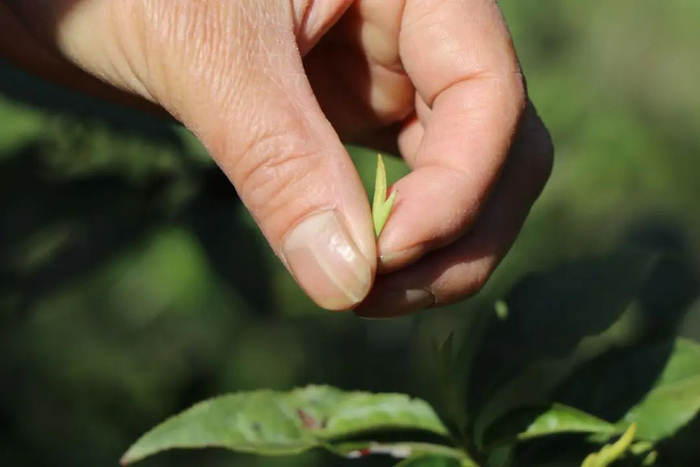 按严格按标准只采集饱满挺拔的芽尖部分。