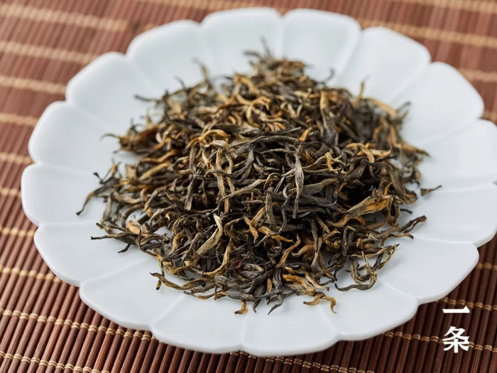 相对发酵程度也比金骏眉更深一些,因而使得茶叶黑色占比更多,绒毛、嫩芽皆具。
