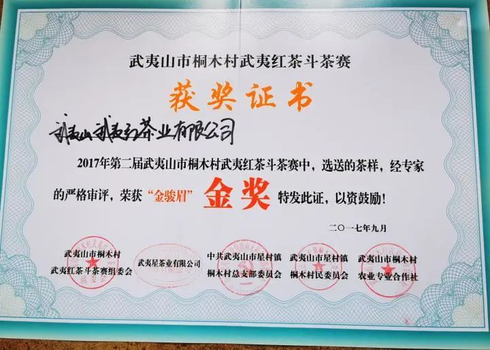 胡必胜有独门制茶方法,制出的金骏眉口感更为清爽,曾获得了桐木村红茶斗茶大赛中的金奖。
