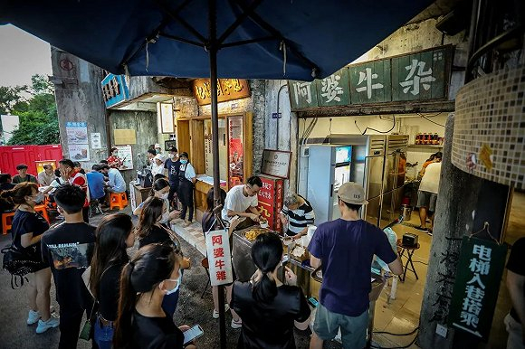 事实上,广州一些名声在外的餐饮品牌多少有些偶然性。超级文和友内进驻的品牌,或许并不能真正地代表广州美食文化。譬如炒螺明、风筒辉烧烤等在内的老字号,虽然所以成名、受到美食评论推荐,但作为大排档或路边摊口味水平的它们,能否在广州这一美食丛林里脱颖而出,很值得打个问号。