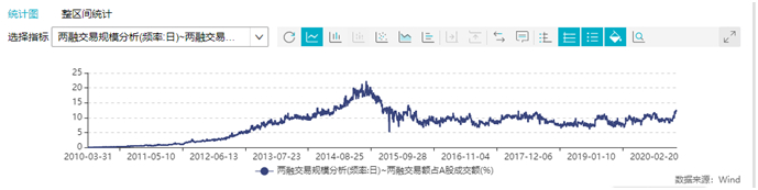 另据Wind数据,目前两融交易额占A股交易额的比例约12%,虽较前段时间有所提升,但A股史上最高峰时,这一比例一度接近20%。