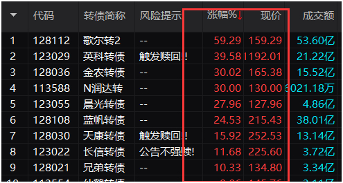 在今天行情再次现“柳暗花明”之际,兼具债券属性和股票属性的可转债也上演疯狂一幕,出现多只单日暴涨超过30%的可转债。