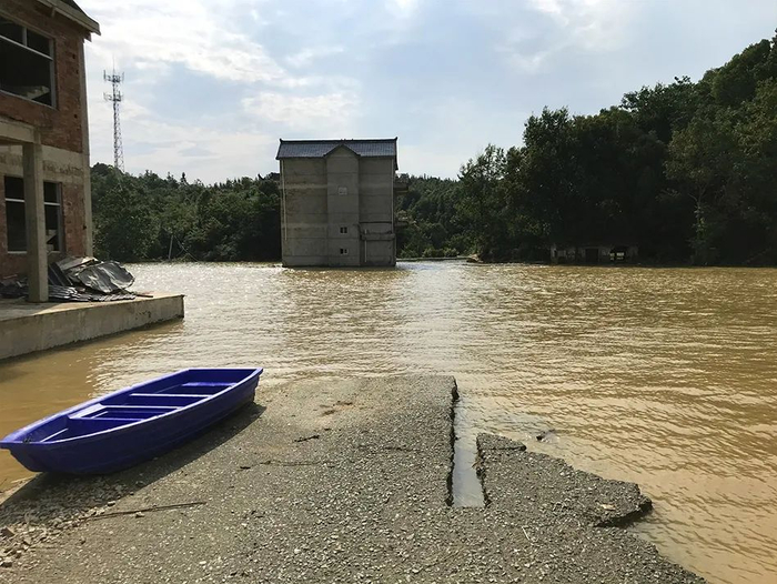 荻溪村的决堤口,四栋房子被洪水冲走