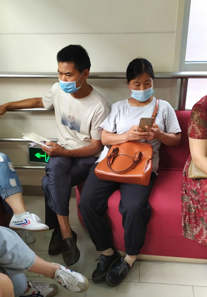 在医院等号的黄来援夫妻