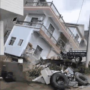 大约40分钟后,吴事逊家对面的一间平房轰然倒下,紧接着是他自己的房子。