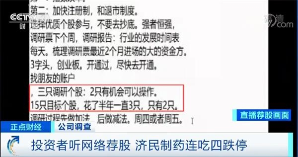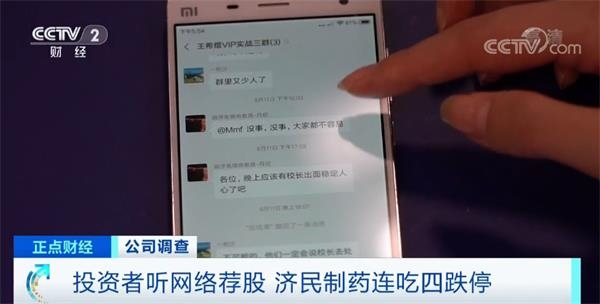 不法分子利用微信群等推荐股票,济民制药股价连续三天跌停。