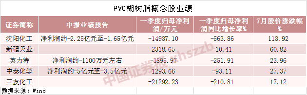 公司预计上半年亏损1.65亿-2.25亿元,去年同期为盈利6089万元,同比下降370.98%-469.52%。近期同样暴涨的PVC糊树脂其他个股,上半年业绩也多告预亏。