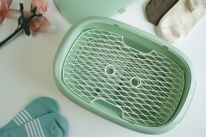 别看烘干盒只有小小的一台,里面的空间可是一点都不少,而且内有大小两层网架,充分利用了收纳盒的空间,方便衣物摊平,有助于快速干衣并且杀菌。