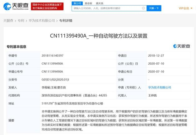 近日,在华为技术有限公司新增的数十条专利信息中,“一种自动驾驶方法以及装置”赫然在列。该专利申请日为2018年12月27日,申请公布日为2020年7月10日。专利摘要显示,该专利申请实施例公开了一种自动驾驶方法以及自动驾驶系统,用于根据用户的历史驾驶行为数据以及当前环境数据确定自动驾驶策略,从而实现安全驾驶。
