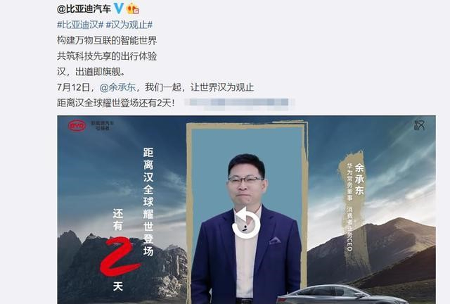 华为和比亚迪其实在很早之前就已经有所合作,后者也曾为前者代工过相关产品,这次,两者将目标放在了未来的新方向上。日前,比亚迪汽车官方正式官宣,7月12日将举行比亚迪汉全球发布会,华为消费者业务CEO余承东会亲自站台。值得一提的是,HUAWEI HiCar、5G、手机NFC车钥匙等一些华为先进黑科技将会出现在这款车身上,正式在新能源汽车中商用。