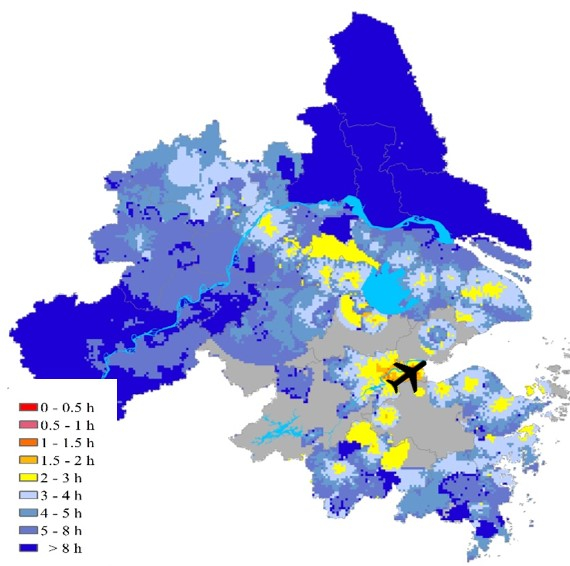 总之,长三角城市群面向国家广域大尺度出行联系的便捷性、可达性和充分性均明显不足,更不用说与国际间的高铁联系了。