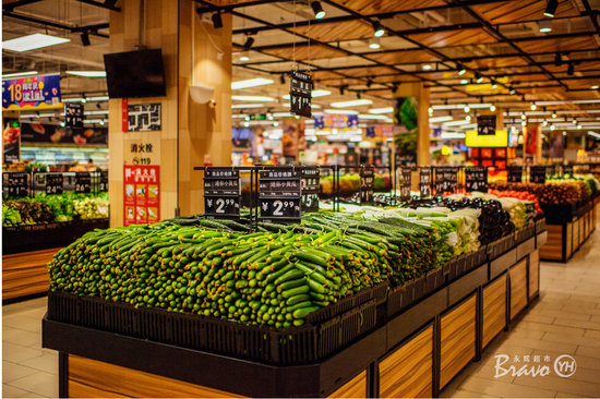 在采购端,围绕“品质、品牌、源头”三大核心原则,永辉超市建立了“源头直采+区域直采+自有品牌”的三重模式,并成立了专门的买手公司,建立三大层级采购体系,降低采购成本,压缩流通环节的费用,减少长尾商品损耗。
