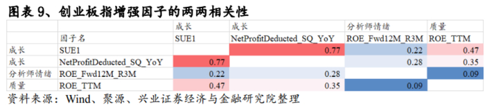 2、我们沿用《指数增强系列研究之一:基于大类因子加权的指数增强策略》中的单因子增强组合测试法测试了创业板指中有效的因子,发现创业板指内成长因子的表现最为突出:最终我们结合单因子组合的信息比率、最大回撤和因子间的相关性,共挑选出成长因子2个、分析师情绪因子1个、质量因子1个,并根据大类因子进行了加权合成。