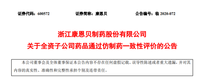 截至本公告日,杭州康恩贝是国内第一家通过国家药监局一致性评价的泮托拉唑钠肠溶片生产厂家。