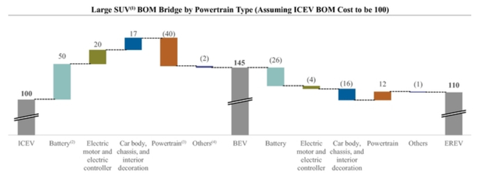 成本结构使EREV制造商可以提供比BEV更具竞争力的价格,同时实现更好的经济效益。考虑到消费者为购买ICE车辆所支付的10%的车辆购置税,EREV在价格上可能与ICE车辆一样有竞争力。这对于理想汽车而言,无疑是一条独特而有前景的弯道超车之路。