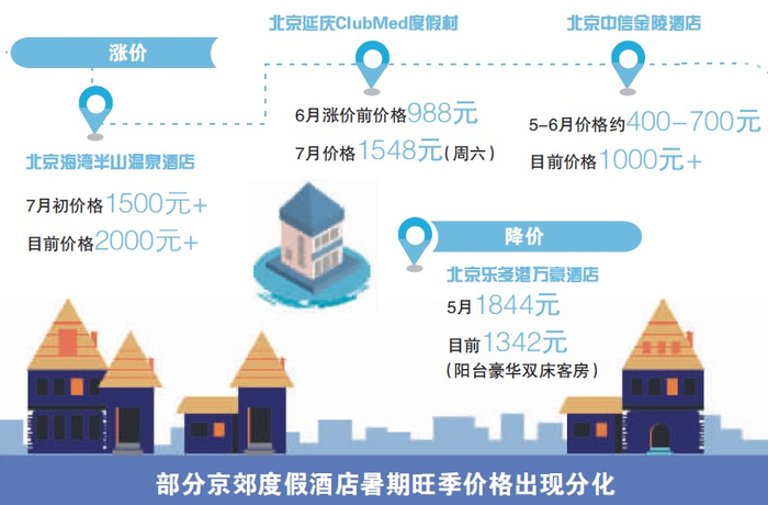与此同时,北京延庆ClubMed度假村也将于暑期旺季涨价。根据其官网信息显示,7月该酒店起价为988元/晚,而8月起价则为1188元/晚,且该月大部分日期价格均为1548元或1458元/晚,该酒店相关负责人也表示,今年暑期价格相比去年刚刚开业时的确有所上涨。