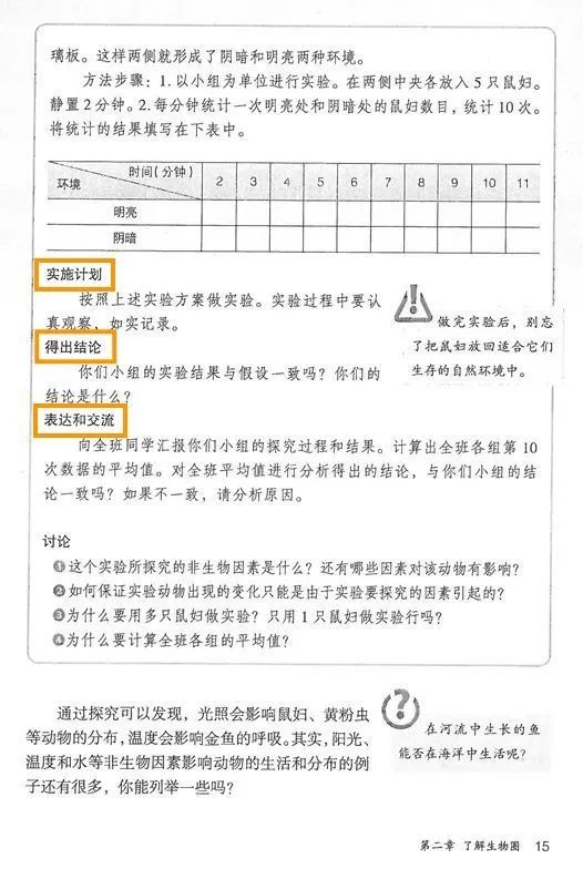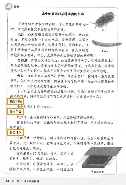 正如人教版《生物学》七年级上册第二章中的这个探究课题——非生物因素对某种动物的影响: